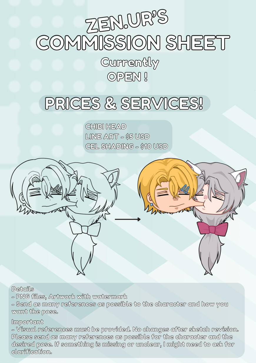 - Please credit me properly when you post and use the commission. You can mention me on TikTok @zenuurREFUNDS